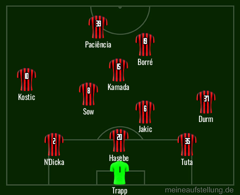 Und während im Hinspiel noch die Viererkette und das von Glasner favorisierte 4-2-3-1 en vogue war, kann man nach den letzten Wochen davon ausgehen, dass ein 3-5-2 mit hochstehenden Außen das System der Wahl ist. Einzige spannende Frage für mich, wer darf sich auf rechts versuchen? Wieder Timmy Chandler? Oder vielleicht doch Durm, da Costa oder Touré? Oder vielleicht gar der angeblich vor einem Abschied stehende Barkok? Man darf gespannt sein.