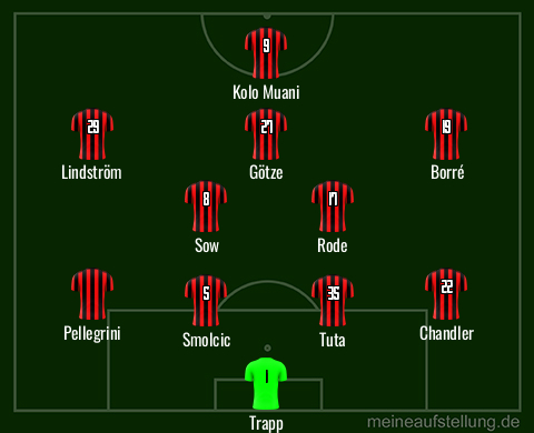Ich kann mir durchaus vorstellen, dass Oliver Glasner auf Grund der Ausfälle von Onguéné, Touré, Buta, Kamada und Hrustic auf eine Viererkette zurückgreift und das ganze als 4-2-3-1 aufstellt. Also etwas so: