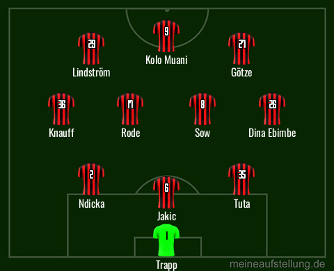 Man darf gespannt sein, ob es so einfach wird. Was dem sicher entgegen steht ist die personelle Situation, dass nun neben Hasebe mit Kamada auch der zweite bisher sehr wichtige Spieler wegen Krankheit fehlt. Man kann eigentlich annehmen, dass sich die Mannschaft damit ziemlich von selber aufstellt. Sow für Kamada und möglicherweise Knauff für Pellegrini.