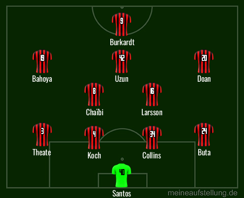 Jetzt, am Anfang der Saison kann ich mir vorstellen, dass der Trainer die Rotation eher klein hält und vielleicht Brown eine Ruhepause gönnt. Dafür könnte dann Theate nach links außen in der Viererkette gehen, Collins und Koch rutschen auch jeweils eine Position nach links und rechts könnte Buta oder vielleicht Baum auflaufen. Auch wenn der Trainer in der Pressekonferenz eine Pause für Uzun für möglich erklärt hat, denke ich, dass der sich derzeit in Topform befindliche Spielmacher drinbleibt und vielleicht später für den wieder genesenen Götze Platz machen könnte. Und ich denke, dass Bahoya wieder für Knauff startet. Und im Tor? Ich tippe auf Santos.
